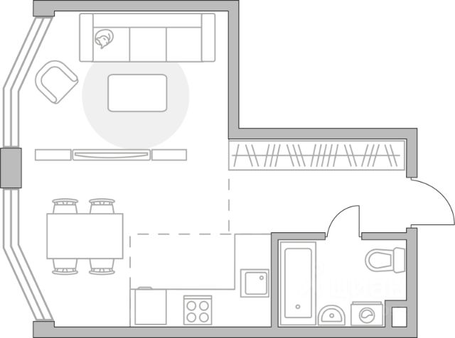 Продаётся 1-комнатная квартира в строящемся доме (Корпус 1), срок сдачи: IV-кв. 2028, общей площадью 34.69 кв.м., на 12 этаже.