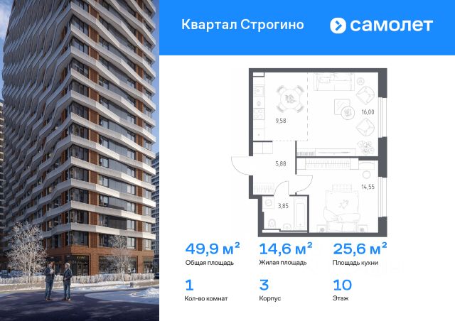 Прямая продажа от застройщика. Продаётся 1-комнатная квартира общей площадью 49.57 м² с предчистовой отделкой в ЖК City Вау, квартале Cliff, на 10-м этаже 15 этажного дома. Cliff by City Вау - это пять клубных домов на первой линии озелененной набережной Реки Москвы. Со стороны южного фасада, обращенного к воде, находится прогулочная зона, организующая входы в жилые секции. Вдоль северного фасада пятой очереди проходит общеквартальный озелененный бульвар с тематическими зонами и дворовыми территориями. В каждой секции предусмотрены сквозные входные группы, а между секциями - проходы для пешеходов, связывающие набережную и бульвар с местами для отдыха внутри квартала. Данное решение позволяет сделать комплекс с доступной и безбарьерной городской средой. Со стороны бульвара у каждой башни для жильцов комплекса расположены приватные потайные дворики, огороженные живой изгородью и интегрированные в общий ландшафт бульвара. Из-за перепадов высот по рельефу, уровень бульвара возвышается относительно уровня дворов, что делает их еще более камерными. Доступ на территорию со стороны бульвара осуществляется через калитку. В каждом здании комбинируется максимальное количество и разнообразие форматов квартир: от видовых квартир с зелеными террасами и лоджиями до квартир малого формата. Входные группы 1-ых этажей поистине уникальные пространства. Лобби имеют высоту потолков 5 - 6 м и панорамные окна. В отделке используются дорогие натуральные материалы:шпон дерева, мрамор, металл и др. Одноуровневый паркинг с дополнительными функциями: - Велопарковка, - Места для подкачки шин, - Зоны погрузки и разгрузки, - Зарядки для электрокаров, - Кладовыми помещениями. Концепция жилого комплекса City Вау - настоящий город в городе с отлично развитой инфраструктурой и собственной благоустроенной набережной. На территории жилого комплекса расположено пять кварталов - Atlantic, Pacific, Indian, North, Cliff. Жилой квартал City Вау отличается оригинальной концепцией и выделяется среди других проектов такими характеристиками как: - Архитектура, - Виды из окон, - Природное окружение, вызывая гордость у жителей и восхищение у прохожих. Вся жизнь района Покровское-Стрешнево строится вокруг водных объектов: - Пойма реки Сходни с уникальной экосистемой, - Речка Химка и Химкинское водохранилище, - Москва-река, - Канал имени Москвы. Кругом вода, и местные с удовольствием этим пользуются. А сразу за рекой - центр водного спорта в Строгино с вейк-парком и яхт-клубами. Помимо воды, здесь очень много зелени: - Рядом Сходненский ковш памятник природы, естественный амфитеатр глубиной 40 метров; - Парк при усадьбе Братцево с фруктовым садом; - Дубовая роща "Маяк", - Алешкинский лес; - Лесопарк Покровское-Стрешнево с пляжами и бобрами. Главные транспортные артерии района: - Волоколамское шоссе, - Таганско-Краснопресненская линия метро и МЦД-2. Всего за 20 минут можно добраться до центра на машине или метро, а МЦД связывает ЖК City Вау с
