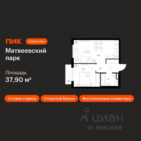 О квартире Продаётся 1-комнатная квартира общей площадью 35.3 кв.м. с отделкой white box. Квартира расположена на 10 этаже корпуса 5.2 в жилом комплексе бизнес-класса "Среда на Лобачевского" в пешей доступности от метро "Аминьевская". О жилом комплексе "Среда на Лобачевского" полностью соответствует критериям современного жилого пространства. Взяв за основу рациональный подход, мы гармонично соединили дизайн, актуальные тренды и функциональность. Продуманный современный экстерьер и функциональные планировки внутри, приватные пространства и разнообразные досуговые зоны для каждого члена семьи — все это "Среда на Лобачевского". Инфраструктура Район отлично развит и наполнен жизнью, здесь уже есть вся необходимая инфраструктура — детские сады, школы, медучреждения, торговые центры, благоустроены парки для прогулок и отдыха, удобен и легкодоступен городской транспорт. Рядом расположены учебные корпуса крупных университетов — МГУ, МГИМО и РАНХиГС. Школы и детские сады в районе занимают высокие позиции в городских рейтингах, поэтому вам не придется беспокоиться о качестве образования детей. Как и об отдыхе: поблизости расположены живописные пруды, реки и парки. Это Парк Олимпийской деревни, Парк имени 50-летия Октября, Мещерский парк и Очаковские пруды. Теперь поставить галочки в еженедельном чек-листе "спорт-прогулки-встречи с друзьями" можно, не покидая любимый район. Особенности Особое внимание в проекте уделяется созданию функциональных пространств не только внутри дома, но и за его пределами. В ландшафтном парке "Среды на Лобачевского" расположены крытые зоны для спокойного времяпровождения, места для активного отдыха и спорта, коворкинг, соседский комьюнити-центр, водные объекты. —Ландшафтный парк во дворе. —Водный сад с зонами отдыха. —Зоны коворкинга. —Дизайнерские гранд-лобби. —Бесключевой доступ. —Подземный паркинг.
