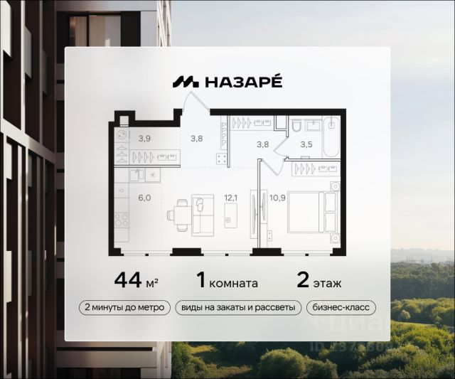 Продается 1-комнатная квартира в ЖК "НАЗАРЕ'" Общая площадь - 41.20 Тип дома - монолитный Этаж - 2 Год сдачи - 2028 Предлагается квартира площадью 41.20 кв. м в новом современном квартале на востоке Москвы, прямо у станций метро и МЦК "Бульвар Рокоссовского". Квартира располагается в корпусе 6 на 2 этаже комплекса бизнес-класса "НАЗАРЕ'". Великолепная транспортная доступность: • 2 минуты ходьбы до метро и МЦК "Бульвар Рокоссовского"; • 3 минуты на авто - удобный выезд на СВХ (МСД); • 10 минут на авто до национального парка "Лосиный остров"; • 10 минут на авто до "Измайловского парка"; • 15 минут до авто до парка "Сокольники"; • 15 минут занимает выезд на ТТК, • 18 минут на авто до Садового кольца. Индивидуальная архитектура в современном стиле: • шесть башен переменной высотности от 24 до 43 этажей, в том числе одна высотная 143-метровая доминанта, которая станет достопримечательностью востока Москвы; • авторы архитектурной концепции - знаменитое бюро СПИЧ (среди их работ - башня "Федерация", новое здание Третьяковской галереи, реконструкция БСА "Лужники" и др.); • торгово-развлекательный комплекс с фитнес-центром, детской игровой комнатой и открытыми террасами прямо возле квартала; • дизайнерские лобби от бюро ABOVE ARCHITECTURE с панорамными окнами, интерьерами в теплой цветовой гамме и мягкой зоной ожидания располагаются в каждой башне; • корпуса расположены так, чтобы из окон открывались потрясающие виды на закаты и рассветы, зеленые панорамы или огни мегаполиса; Особенности расположения "НАЗАРЕ'" находится максимально близко к метро, и в то же время проект вписан в уже существующую инфраструктуру зеленого столичного района Богородское. Это обеспечивает быстрый доступ ко всем нужным объектам инфраструктуры (детские сады, школы, медцентры, магазины, салоны красоты, фитнес-клубы, футбольные поля, спортивные школы), а также к живописным зеленым зонам - национальному парку "Лосиный остров", парку "Сокольники", Черкизовскому детскому парку, Измайловскому лесопарку с усадьбой Измайлово. Собственная инфраструктура и благоустройство Шесть башен квартала будут объединены цокольным этажом, в который можно попасть как с улицы, так и со стороны лобби. Здесь разместятся необходимые для комфортной повседневной жизни кофейни, супермаркет, рестораны, магазины и многое другое. В комплексе предусмотрен вместительный двухуровневый подземный паркинг с келлерами для хранения сезонных вещей. Во дворе комплекса "НАЗАРЕ'" будут места как для спокойного отдыха и работы, так и для игр и спорта. Здесь организованы игровые площадки для детей всех возврастов, места для стритбола и тенниса, а также зона с природным ландшафтом и коворкинг с экологичной деревянной мебелью.