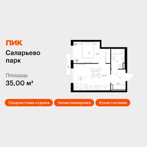 Продается ВИДОВАЯ квартира с новым ремонтом и балконом в 8-ми минутах пешком до метро Филатов луг в жилом комплексе "Саларьево парк"!