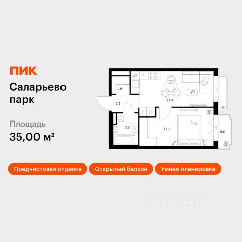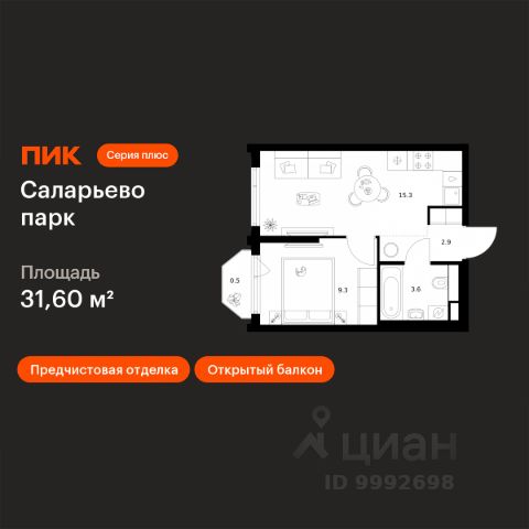 Продаётся 1-комн. квартира площадью 31,1 кв.м на 5 этаже 24 этажного дома (Корпус 82.4, Секция 4) проекта ПИК Саларьево парк. Светлый просторный подъезд на уровне земли, функциональная планировка, большие окна, предчистовая отделка. Жилой район "Саларьево парк" расположен в Новой Москве, в четырёх километрах от МКАД по Киевскому шоссе. Две станции метро: "Саларьево" и "Филатов луг", — находятся в пешей доступности от проекта. Дойти до них можно за 510 минут. В квартале уже создана качественная среда, где есть абсолютно всё для полноценной жизни, работы и отдыха. Благодаря удобному расположению проекта всё важное будет рядом: детские сады, школы, кафе и рестораны, шопинг в торговых центрах, фитнес и даже аэропорт. Все корпуса в квартале гармонично сочетаются, образуя единую городскую среду. Между собой их объединяет невысокая этажность и натуральная цветовая гамма. Здесь приятно гулять и проводить время на улице всей семьёй. В "Саларьево парке" создана уникальная образовательная среда, включающая в себя шесть школ, рассчитанных на 6 250 учеников. Две из них уже открыты, их посещает 2 300 детей. Также на территории "Саларьево парка" находится 12 детских садов, один из которых с бассейном. Сейчас уже открыты 7 садов. В "Саларьево парке" открыта уникальная игровая площадка — PlayHub "Оригами". Здесь есть ручей, горка-труба и рельефные холмы. Взрослые смогут отдохнуть в уютном кафе, пока дети играют. Также на территории проекта есть SportHub — большая спортивная зона, разделённая по интересам и возрастам. Здесь можно заниматься разными видами спорта: футболом, баскетболом, волейболом и стритболом. Зимой центральную часть площадки превращают в каток. Во дворах-парках жилого квартала есть места для отдыха, детские и спортивные площадки. На первых этажах домов расположены магазины, кафе и полезные сервисы. Также вблизи проекта есть несколько масштабных торговых центров. До ТЦ "Саларис" пять минут пешком, до "Рио", Metro Cash & Carry и "Леруа Мерлен" — пять минут на автомобиле. Артикул 1032555 (Застройщик ООО "Специализированный Застройщик "Тирон") Продается 1-комнатная квартира с балконом рядом с метро Филатов луг.