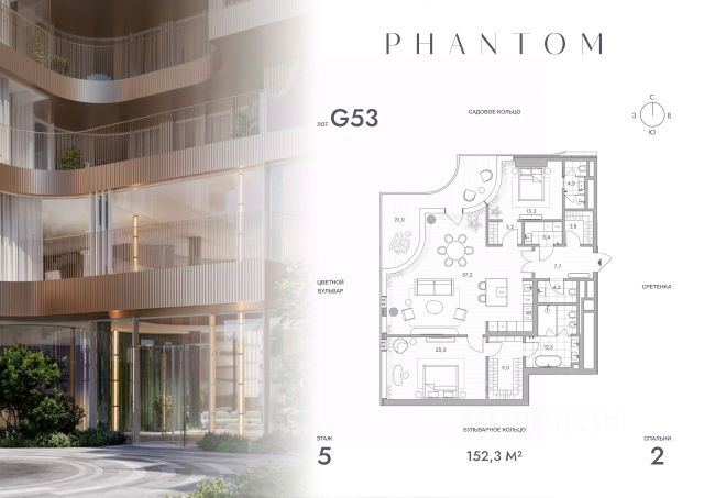 Представляем просторную 2-комнатную квартиру на 7 этаже Резиденций PHANTOM. Общая площадь лота составляет 358,9 кв.м. Пентхаус на 3 стороны света, увеличенная высота потолков. Невероятная терраса, с видом на город и во внутренний благоустроенный сад. Позволяет установить натуральный дровяной камин в гостиной зоне и в зоне террасы. Изолированная кухня с панорамными видами. Просторная мастер зона включает гардеробную с окном. PHANTOM пространство абсолютного физического и эмоционального комфорта. Клубный дом класса deluxe, за футуристичными и плавными фасадами которого скрыт приватный мир, создающий идеальную среду для жизни. Преобладание белого цвета в экстерьере, сплошное остекление, неравномерный ритм террас и обтекаемость контура фасада создают эффект невесомости. Дом словно парит в воздухе. Мягкие природные линии фасада плавно переходят во внутреннее пространство здания. Здесь все сценарии жизни объединяются в высококлассной клубной инфраструктуре: собственный корт для падел-тенниса, терраса на крыше с открытым камином и дизайнерским водопадом, кинозал, сигарная, двухуровневый ивент-холл, библиотека, переговорная, панорамный фитнес зал, игровая и комната красоты. Внутренняя территория полностью закрыта от посторонних. Это природный оазис с водной архитектурой, зонами отдыха, уютными беседками и детской площадкой. Здесь легко отстраниться от городского шума и почувствовать комфорт. Подземный паркинг имеет удобный въезд для спорткаров и автомобилей представительского класса, зарядные станции для электромобилей, автомойку, комнату хранения велосипедов, келлеры и валет сервис. Вы всегда сможете оставить свой автомобиль у входа в лобби и получить его чистым в нужное время. Все машиноместа имеют увеличенную площадь.
