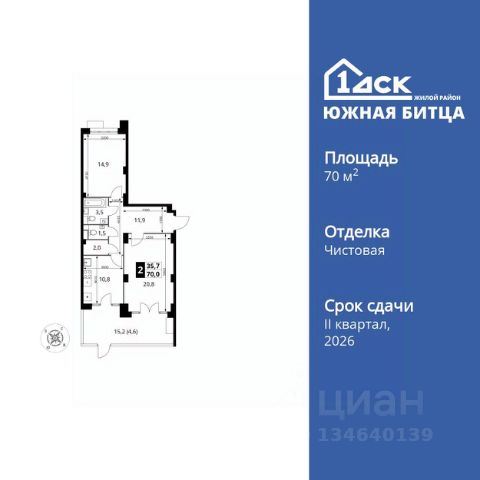 УСПЕЙ ПО СЕМЕЙНОЙ ИПОТЕКЕ БЕЗ НАЦЕНКИ! От 39 000 рублей в месяц! Прямая продажа от застройщика! Семейный жилой район класса Комфорт Плюс Продаётся 2-к квартира номер 433 общей площадью 70.3 кв.м. на 1-м этаже 22 этажного здания. Отделка Whitebox. Особенности квартиры: - Распашная планировка - отличное сочетание удобства и свободы. - Гостевой санузел - комфорт и удобство для ваших гостей. - Дополнительный вход - удобство для семьи и гостей. - Увеличенная высота потолков - ощущение простора и легкости. - Просторная кухня - место для семейных ужинов и кулинарных экспериментов. - Гардеробная - удобство для хранения и организации вещей. - Ниша под шкаф - компактное и удобное место для вещей. - Терраса - место для загара и вечерних посиделок. Квартира с предчистовой отделкой (White box). Вам не придется заниматься черновыми и трудоёмкими работы, а чистовую отделку и дизайн - сделайте на свой вкус. Информация о комплексе: Сочетание свободного перемещения по внутреннней территории без машин и ощущения абсолютной безопасности благодаря надежным ограждениям - вот что отличает ЖК Южная Битца. На территории комплекса созданы все условия как для активного образа жизни, так и для спокойного времяпрепровождения. Свободно перемещайтесь по внутренней территории в безбарьерной среде! Продуманное зонирование во дворах позволяет отделить тихие зоны для родителей со спящими младенцами и тех, кто хочет почитать на свежем воздухе, от шумных игровых зон. Игровые зоны учитывают возраст детей. Площадки для детей старшего возраста вынесены за пределы дворов. Ощущение уютного дома должно начинаться с подъезда. Мы постарались предусмотреть все нюансы, чтобы наши лифты отвечали самым строгим современным требованиям. А наличие кладовых позволит вам поддерживать идеальный порядок и уют в вашей квартире! Транспортная доступность: В 3 км от МКАД в нескольких минутах езды до трех станций метро: Аннино, Бульвар Дмитрия Донского, улица Старокочаловская и станции МЦД2 - жд Бутово. Внутренняя инфраструктура: Для жителей жилого района "Южная Битца" доступна развитая инфраструктура близлежащих московских районов Чертаново, Южное, Бирюлёво Западное, Северное Бутово и Южное Бутово. Множество образовательных учреждений, объекты здравоохранения, торговые и развлекательные центры, кинотеатры, кафе, рестораны, парки.