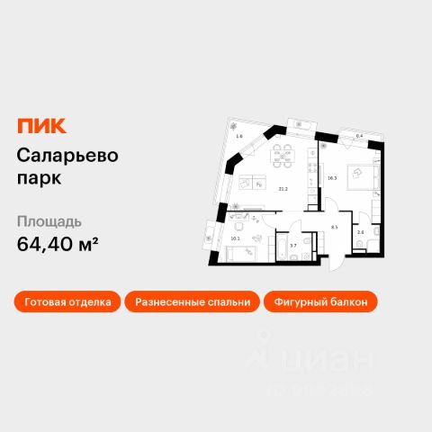 Продаётся 2-комн. квартира площадью 46,3 кв.м на 13 этаже 16 этажного дома (Корпус 57.4, Секция 4) проекта ПИК Саларьево парк. Светлый просторный подъезд на уровне земли, функциональная планировка, большие окна, предчистовая отделка. Жилой район "Саларьево парк" расположен в Новой Москве, в четырёх километрах от МКАД по Киевскому шоссе. Две станции метро: "Саларьево" и "Филатов луг", — находятся в пешей доступности от проекта. Дойти до них можно за 510 минут. В квартале уже создана качественная среда, где есть абсолютно всё для полноценной жизни, работы и отдыха. Благодаря удобному расположению проекта всё важное будет рядом: детские сады, школы, кафе и рестораны, шопинг в торговых центрах, фитнес и даже аэропорт. Все корпуса в квартале гармонично сочетаются, образуя единую городскую среду. Между собой их объединяет невысокая этажность и натуральная цветовая гамма. Здесь приятно гулять и проводить время на улице всей семьёй. В "Саларьево парке" создана уникальная образовательная среда, включающая в себя шесть школ, рассчитанных на 6 250 учеников. Две из них уже открыты, их посещает 2 300 детей. Также на территории "Саларьево парка" находится 12 детских садов, один из которых с бассейном. Сейчас уже открыты 7 садов. В "Саларьево парке" открыта уникальная игровая площадка — PlayHub "Оригами". Здесь есть ручей, горка-труба и рельефные холмы. Взрослые смогут отдохнуть в уютном кафе, пока дети играют. Также на территории проекта есть SportHub — большая спортивная зона, разделённая по интересам и возрастам. Здесь можно заниматься разными видами спорта: футболом, баскетболом, волейболом и стритболом. Зимой центральную часть площадки превращают в каток. Во дворах-парках жилого квартала есть места для отдыха, детские и спортивные площадки. На первых этажах домов расположены магазины, кафе и полезные сервисы. Также вблизи проекта есть несколько масштабных торговых центров. До ТЦ "Саларис" пять минут пешком, до "Рио", Metro Cash & Carry и "Леруа Мерлен" — пять минут на автомобиле. Артикул 1018651 (Застройщик ООО "Специализированный Застройщик "Тирон")