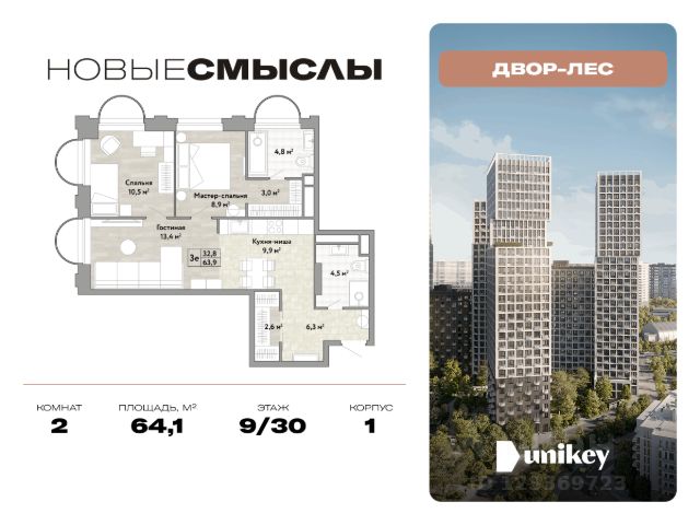 В жилом комплексе, расположенном по соседству с ландшафтным парком "Южное Бутово", продается 2-комнатная квартира площадью 53.10 кв. м. без отделки. Квартира расположена на 9 этаже 1 корпуса в жилом квартале комфорт-класса "Новые Смыслы" (ГК Unikey/Юникей). Доступная и удобная локация: - 10 минут ходьбы до станции метро "Потапово". - 25 минут ходьбы до станции метро "Бунинская аллея". - 15 минут на авто до Калужского шоссе. - 20 минут на авто до МКАД. - 30 минут на машине до аэропортов "Внуково" и "Остафьево". Продуманный архитектурный проект: - Разноуровневые секции с эстетичные башнями и контрастными цветовыми сочетаниями, напоминающими башни в Сити. - Сказочные виды из окон на современный район столицы. - Авторские планировки с потолками в 3 метра, просторными кухнями-гостиными и мастер-спальнями. - Комфортные бесплатные общественные пространства. - Подземный паркинг с прямым доступом на лифте. - Настоящий лес с живописными пейзажами и прудом прямо во дворе. Расположение Комплекс "Новые Смыслы" расположится в благоприятном районе Новой Москвы - Коммунарка. Зеленое окружение, богатая инфраструктура развивающегося района - все это сформирует особое пространство для комфортной жизни, наполненной смыслом. 10 минут на велосипеде - и вы в ландшафтном парке "Южное Бутово" или сквере у Потаповских прудов. Чуть дальше расположен Бутовский лесопарк. В окружении "Новых Смыслов" вы найдете все необходимые социальные объекты. В двух шагах от дома находится 5 школ, более десятка детских садов, секции для занятий малышей и подростков, частные клиники, супермаркеты, рестораны, студии красоты и фитнес-центры. За 12 минут на авто вы доберетесь до ледовой арены, комплекса "Спорт Станция" и спа-центра "Termoland". Внутренняя инфраструктура Для жителей "Новых Смыслов" будут созданы бесплатные общественные пространства: - Деловая гостиная с эстетичным коворкингом и переговорными. - Гостиная для души и тела, включающая фитнес-зону с тренажерами и пространства для стретчинга, йоги и медитаций. - Гостиная детства, где дети будут играть и развиваться под присмотром тьютора. - Кино-гостиная - кинотеатр на крыше одного из домов, предлагающий разнообразную программу. - Прачечная, работающая только для жильцов. Вместе с корпусами комплекса на территории запланировано строительство детского сада. На первых этажах корпусов откроются кофейни, пекарни, сервисы быта и пункты доставки. Благоустройство Чтобы отдохнуть от суеты города, достаточно выйти во двор: здесь раскинулся настоящий лес с живописными пейзажами. В тени деревьев жителей ждут пруд с мостиком и беседкой на берегу, тихие прогулочные аллеи, спортивная площадка и зоны для занятий йогой и бадминтоном на свежем воздухе. Юных жителей порадуют современные детские площадки, жукарий и специальное пространство для подвижных игр. Безопасность на территории гарантирована: двор огорожен от машин и оснащен камерами видеонаблюдения.