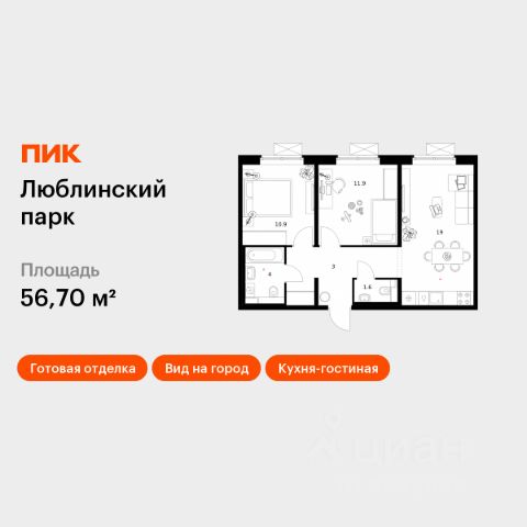 Продаётся 2-комн. квартира площадью 53,6 кв.м на 15 этаже 25 этажного дома (Корпус 12, Секция 5) проекта ПИК Люблинский парк. Светлый просторный подъезд на уровне земли, функциональная планировка, большие окна, c отделкой. Жилой квартал "Люблинский парк" расположен на юго-востоке Москвы, в шаговой доступности от станции "Братиславская". На метро до центра ехать всего 30 минут. Также недалеко станция МЦД "Перерва", от которой можно уехать в Москву или в область. В проекте 54 жилых корпуса, три школы, семь детских садов, поликлиника. В районе есть все условия для комфортной жизни: торговые центры, школы, детские сады, поликлиники и спортивные центры. Рядом находятся усадьба Люблино, скверы и парки. Различные магазины, кафе и другие сервисы откроются на первых этажах, а на подземных будут паркинги с удобной навигацией. В зелёных дворах без автомобилей мы построим детские площадки и места для отдыха. А ещё "Люблинский парк" стал третьим проектом ПИК с большой игровой площадкой PlayHub, которая уже открылась между 1-м и 2-м блоками на безопасном расстоянии от дороги. Новое детское пространство "Остров" воплощает идею бесконечной игры. Ландшафт площадки — это ещё и игровой элемент, который помогает детям придумывать множество самых разнообразных игр. Здесь интересно детям разного возраста — от малышей до подростков. Жителям квартала Люблинский парк и их друзьям доступен проект ПИКСПОРТ — это бесплатные занятия с профессиональными тренерами. Тренировки по разным направлениям, например йога, фитнес, бег, воркаут, проходят как в группе на улице рядом с домом, так и онлайн. Артикул 659867 (Застройщик ООО СЗ "Люблино Девелопмент")