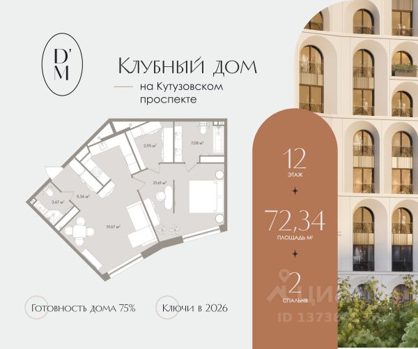 Клубный дом DORO MILLE расположен в одном из самых престижных и исторически значимых районов Москвы — Дорогомилово. Уникальная локация DORO MILLE, где гармонично сочетаются тишина, приватность и доступность ко всем важнейшим объектам столицы. Дорогомилово — это "тихий центр", предлагающий своим жителям не только спокойствие и уют, но и великолепную транспортную доступность. Клубный дом расположен всего в 7 минутах ходьбы от станции метро "Киевская", а также в непосредственной близости к Кутузовскому проспекту, одной из главных магистралей Москвы. Отсюда легко добраться до всех значимых деловых и культурных центров: в нескольких минутах езды Садовое и Бульварное кольцо, Кремль, Москва-Сити, ЦУМ и ГУМ. Комплекс расположен в глубине Дорогомиловских улиц, вдали от городского шума и суеты. Здесь царит атмосфера старомосковской аристократичности, где соседствуют исторические здания и современные комплексы. Каждый элемент в DORO MILLE продуман до мелочей: от элегантного фасада, состоящего из 343 арок, до просторных лотов с выверенной эргономикой и безупречного сервиса. Архитектура вдохновлена итальянским неоимпериализмом и испанским неомодернизмом, придавая зданию неповторимую легкость и изящество. Всего 150 апартаментов и 6 пентхаусов предлагают широкий выбор планировочных решений, включая студии, варианты с одной-четырьмя спальнями, каминами и верандами. Каждый лот спроектирован так, чтобы увеличить эффективное пространство и обеспечить максимальный комфорт для резидентов: окна в ванных комнатах, несколько гардеробных и просторные гостиные-столовые. Жители DORO MILLE смогут наслаждаться не только исключительными условиями проживания, но и полной приватностью. Закрытый двор-сад без машин, выполненный по проекту архитектурного бюро Wowhaus, превратится в собственный зеленый оазис в центре Москвы с функциональными зонами для отдыха и спорта. Проект был высоко оценен профессиональным сообществом, завоевав множество наград, включая премию Move Realty Awards за лучшие архитектурные решения и премию Urban Awards за создание нового формата недвижимости. Клубный дом DORO MILLE — это истинное воплощение мечты о городской жизни в окружении искусства, уюта и изящной архитектуры.