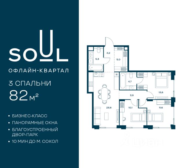 Цены указаны с условием 100% оплаты и стандартной ипотеки. Прямая продажа от застройщика! Продается 3-к. квартира номер 665 общей площадью 82 кв.м. на 9-м этаже 24 этажного дома, Корпус 9. С отделкой White Box Max. Проект бизнес-класса SOUL от девелопера FORMA. До метро Сокол 10 мин пешком. Архитектура от британского бюро SimpsonHaugh. Благоустройство дворов — Gillespies и GAFA. Территория состоит из культурного парка и приватных дворов. Озеленение в эстетике лесного оазиса. Насыщенное благоустройство: прогулочные тропинки, релакс-зоны, пряный и сенсорный сады, развивающие детские площадки и воркауты. В центре проекта объект культурного наследия — общественное пространство Изофабрика, построенная в 30-х годах по проекту архитектора Георгия Гольца. Здесь будут располагаться мастерские для взрослых и детей, выставочные залы, коворкинги, образовательный центр, рестораны и кафе. Квартиры с панорамными окнами, мастер-спальнями, гардеробными, классическими балконами и лоджиями, видовыми террасами. Высота потолков от 2,9 до 3,5 м. В проекте 2 детских сада на 100 и 200 малышей. Клубная гостиная, фитнес-рум, детская игровая комната, дизайнерские лобби, подземный паркинг и келлеры. Продам 3-комнатную квартиру, подойдёт для элитной жизни в районе Аэропорт в Москве.