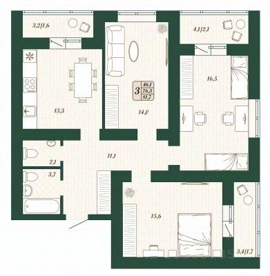 Продаётся 3-комнатная квартира в строящемся доме (Дом 11 ), срок сдачи: IV-кв. 2026, общей площадью 76.3 кв.м., на 10 этаже. Жилой комплекс "Уют-Парк" ЖК "Уют-Парк" -современный жилой комплекс комфорт-класса состоит из семи 9-этажных и двенадцати 16-этажных домов. Преимущества: - Высокое качество строительства домов - Экологически чистый район, близость лесной зоны для прогулок - Благоустроенная территория: прогулочный бульвар, детские и спортивные площадки - Инфраструктура рядом: две школы, детский сад, магазины, физкультурно-спортивный комплекс, арт-объект "Колоннада" и светомузыкальный фонтан - Выделенные места для парковки автомобилей - В ближайшее время запланировано открытие поликлиники, торгового центра, центральной площади района - масштабного объекта благоустройства с водопадом, кафе и прогулочными бульварами. Уютные холлы - Современный дизайн подъездов выполнен в экостиле, поддерживая идею всего жилого комплекса, перекликаясь с фасадами и оформлением двора - Пол и часть стен в холле выполнены с использованием долговечного керамогранита - Светопрозрачные входные группы обеспечивают наполнение холла естественным светом - Лифт с нулевого этажа создает дополнительное удобство для жильцов - В каждом подъезде на первом этаже расположены колясочные. Квартиры - Проектом предусмотрены варианты разной комнатности: от студий до 1, 2 и 3х-комнатных квартир на выбор - Функциональные планировки позволяют максимально эффективно использовать пространство и рассчитаны на разные потребности будущих жильцов - Два вида отделки: Предчистовая "White box": выполнены все капитальные и технические работы, квартира готова для проведения работ по финишной отделке. Чистовая "Премиум": выполнен ремонт с использованием качественных материалов в нейтральной цветовой гамме: ламинат, сантехника, межкомнатные двери, керамическая плитка. Данный вариант позволяет сэкономить ваше время и силы, ускорит заселение в квартиру после получения ключей.