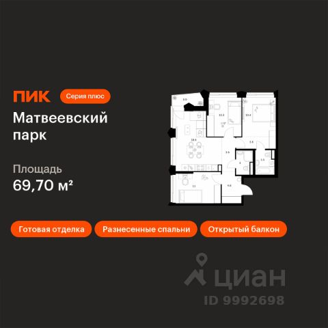 Продаётся 3-комн. квартира площадью 86,8 кв.м на 10 этаже 13 этажного дома (Корпус 4.4, Секция 1) проекта ПИК Матвеевский парк. Светлый просторный подъезд на уровне земли, функциональная планировка, большие окна, c отделкой. "Матвеевский парк" — проект "Серии плюс", расположенный на западе Москвы, в районе Очаково-Матвеевское. Ближайшая станция метро "Аминьевская" находится всего в 3 минутах пешком, а в 20 минутах — МЦД-4 "Очаково". Проект входит в состав Матвеевского кластера — современного района, где есть всё необходимое для комфортной жизни: социальная инфраструктура, парки и общественные пространства. Проект расположен в Матвеевском кластере — новом современном районе, который будет состоять из четырёх кварталов: "Матвеевский парк", "Новое Очаково", "Большая Очаковская 2" и Vangarden. Перемещаться между кварталами будет удобно по 350-метровому пешеходному мосту, под которым появится уютный зелёный парк. У проектов будет общая инфраструктура и благоустроенная территория. Уже открыта часть пешеходного бульвара, который строится по проекту британского бюро Gillespies. Здесь можно гулять после работы, играть с детьми, заниматься спортом и отдыхать у сухого фонтана с ночной подсветкой. В будущем в кластере появится пешеходный мост, который соединит жилые кварталы, и комьюнити-центр "ОМА" с магазинами, кафе, местами для спорта, встреч и общения. Отдыхать и заряжаться адреналином жители кластера смогут в SportHub Extreme — зоне площадью более 3 500 м², рассчитанной на любителей экстремальных видов спорта. Здесь будут площадки для безопасного катания на скейтбордах, роликах, самокатах и велосипедах. Для командных игр — например, мини-футбола и стритбола — появится отдельная универсальная площадка с покрытием из резины. Помимо этого, на территории "Матвеевского кластера" начнут работу пять новых школ, шесть детских садов, поликлиника и многофункциональный спортивный комплекс. Архитектурную концепцию корпусов 4 квартала разработало российское бюро KATARSIS. Акцентные белые корпуса с большими окнами делают архитектуру проекта мощной и запоминающейся. А фоновые части зданий придают образу размеренность и спокойствие. В лобби "Матвеевского парка" будет удобная зона ожидания, где можно встретить друзей, курьера или дождаться такси, а также гостевая туалетная комната и колясочная. Артикул 993527 (Застройщик ООО "СПЕЦИАЛИЗИРОВАННЫЙ ЗАСТРОЙЩИК "ЦЕНТРПОЛИС") Купить 3-комнатную квартиру с балконом в районе Очаково-Матвеевское в Москве.
