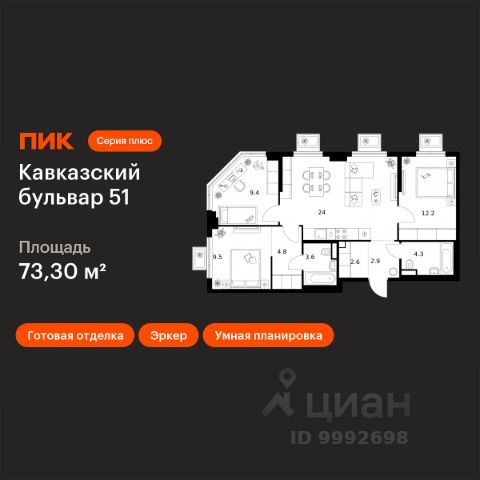 Продаётся 3-комн. квартира площадью 73,3 кв.м на 2 этаже 23 этажного дома (Корпус 3.2, Секция 2) проекта ПИК Кавказский бульвар 51. Светлый просторный подъезд на уровне земли, функциональная планировка, большие окна, c отделкой. "Кавказский бульвар 51" — современный жилой квартал в районе Царицыно. Проект частично реализован. "Кавказский бульвар 51" находится в районе Царицыно, недалеко от одноимённого музея-заповедника. До метро "Кантемировская" — 17 минут пешком. За 20 можно дойти до станции "Чертаново". В 10 минутах на машине — МКАД, в 11 минутах — Варшавское шоссе, а в 16 минутах — ТТК. В проекте жилые дома высотой от 5 до 33 этажей, детский сад и школа. На первых этажах доступны магазины, кафе, салоны красоты и другие сервисы — чтобы купить кофе и свежий хлеб к завтраку, можно просто спуститься на лифте. В уютных дворах-парках есть места для отдыха и детские площадки. Для прогулок на свежем воздухе мы построим для жителей широкий пешеходный бульвар. В районе вокруг "Кавказского бульвара 51" есть всё для комфортной жизни: детские сады, школы, поликлиники, магазины и торговые центры. Девять минут на машине — и вы у музея-заповедника "Царицыно", где можно гулять среди исторических построек, лежать на траве под тенью деревьев или заниматься спортом на специальных площадках. Есть парки и поближе: до Аршиновского можно дойти за 8 минут, а до парка "Сосенки" — за 13 минут. Артикул 1009557 (Застройщик АО "СПЕЦИАЛИЗИРОВАННЫЙ ЗАСТРОЙЩИК "ТОРГОВЫЙ ДОМ СПУТНИК")