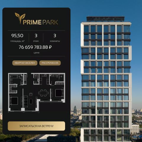 Жилой квартал Prime Park воплощает все преимущества premium-living. Престижная локация на Ленинградском проспекте, 37: - 5 мин. от Тверской улицы, Патриарших прудов и Белой площади, - 20 мин. до аэропорта "Шереметьево" или "Москва-Сити", - 4 парка — Ходынское поле, Петровский и Чапаевский парки, Березовая роща, - 4 станции метро — "ЦСКА", "Аэропорт", "Динамо" и "Петровский парк". Многократный победитель премий European Property Awards и Urban Awards, а также на протяжении пяти лет остается самым продаваемым проектом в своем сегменте. Premium-living Консьержи предугадывают желания резидентов и берут на себя выполнение практически любых бытовых задач. В квартале также есть парк-рейнджер и охрана. Для дополнительного удобства в МОПах предусмотрены почтовые комнаты, колясочные и комнаты для мытья лап домашних питомцев, комната для хранения интернет-заказов. Наличие сервисного входа для персонала позволяет разделить трафик, сохраняя приватную атмосферу в лобби. Резидентам нужно открыть только одну дверь, чтобы оказаться дома: valet-парковщики открывают дверь автомобиля и отвозят его на подземный паркинг, беллмены открывают двери при входе в башню и помогают донести вещи до квартиры, интеллектуальная система обеспечивает бесконтактный вызов лифта. Развитая инфраструктура Близость к центру Москвы, рядом крупнейший ТЦ "Авиапарк", ВТБ Арена, Мегаспорт, ВЭБ Арена, в окружении красивейших парков, включая ультрасовременный Ходынский парк площадью 25 га с панорамными качелями, набережной, фонтанами, детскими и спортивными площадками. На территории квартала предусмотрены приватный фитнес-центр с 25-метровым бассейном и спа, подземный паркинг с кладовыми, местами для хранения велосипедов, электрозарядками и детейлинг-центром для обслуживания автомобилей. На первых этажах башен расположатся кафе и рестораны, цветочный магазин, аптека, салон красоты, премиальный супермаркет и бытовые сервисы. Частный парк Общее парковое пространство квартала — 5,5 га, из них 3 га отведено под частный парк эксклюзивно для резидентов. Большой фонтан, аллеи для прогулок, крупномерные деревья, арт-инсталляции, водные глади, детские площадки и воркаут-зона создают гармоничное сочетание жизни на природе со всеми преимуществами мегаполиса. Уникальная квартирография Более 80 вариантов планировочных решений от однокомнатных квартир до двухуровневых дуплексов и пентхаусов. Панорамные окна, высокие потолки, мастер-спальни, балконы и террасы создают особенный комфорт и уют. Авторская архитектура и дизайн Четыре башни сданы, ключи выдаются в день сделки, 2 башни на этапе строительства, сдача в 2023 и 2024 гг. Уникальный архитектурный ансамбль и ландшафтный дизайн, благородные и ценные материалы в оформлении лобби, предметы искусства, арт-объекты и элементы декора, выполненные на заказ специально для Prime Park, становятся отражением яркой индивидуальности резидентов квартала.