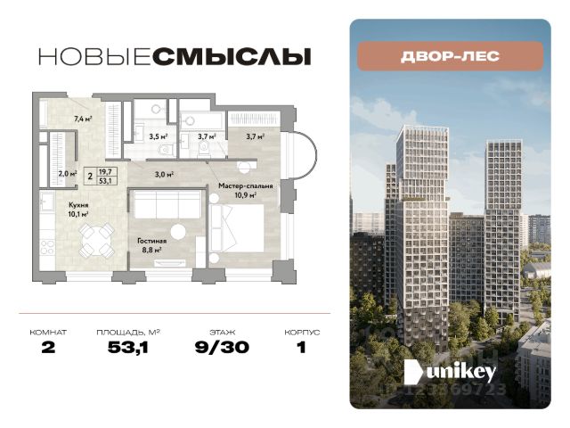 В жилом комплексе, расположенном по соседству с ландшафтным парком "Южное Бутово", продается студия площадью 27.20 кв. м. без отделки. Квартира расположена на 2 этаже 1 корпуса в жилом квартале комфорт-класса "Новые Смыслы" (ГК Unikey/Юникей). Доступная и удобная локация: - 10 минут ходьбы до станции метро "Потапово". - 25 минут ходьбы до станции метро "Бунинская аллея". - 15 минут на авто до Калужского шоссе. - 20 минут на авто до МКАД. - 30 минут на машине до аэропортов "Внуково" и "Остафьево". Продуманный архитектурный проект: - Разноуровневые секции с эстетичные башнями и контрастными цветовыми сочетаниями, напоминающими башни в Сити. - Сказочные виды из окон на современный район столицы. - Авторские планировки с потолками в 3 метра, просторными кухнями-гостиными и мастер-спальнями. - Комфортные бесплатные общественные пространства. - Подземный паркинг с прямым доступом на лифте. - Настоящий лес с живописными пейзажами и прудом прямо во дворе. Расположение Комплекс "Новые Смыслы" расположится в благоприятном районе Новой Москвы - Коммунарка. Зеленое окружение, богатая инфраструктура развивающегося района - все это сформирует особое пространство для комфортной жизни, наполненной смыслом. 10 минут на велосипеде - и вы в ландшафтном парке "Южное Бутово" или сквере у Потаповских прудов. Чуть дальше расположен Бутовский лесопарк. В окружении "Новых Смыслов" вы найдете все необходимые социальные объекты. В двух шагах от дома находится 5 школ, более десятка детских садов, секции для занятий малышей и подростков, частные клиники, супермаркеты, рестораны, студии красоты и фитнес-центры. За 12 минут на авто вы доберетесь до ледовой арены, комплекса "Спорт Станция" и спа-центра "Termoland". Внутренняя инфраструктура Для жителей "Новых Смыслов" будут созданы бесплатные общественные пространства: - Деловая гостиная с эстетичным коворкингом и переговорными. - Гостиная для души и тела, включающая фитнес-зону с тренажерами и пространства для стретчинга, йоги и медитаций. - Гостиная детства, где дети будут играть и развиваться под присмотром тьютора. - Кино-гостиная - кинотеатр на крыше одного из домов, предлагающий разнообразную программу. - Прачечная, работающая только для жильцов. Вместе с корпусами комплекса на территории запланировано строительство детского сада. На первых этажах корпусов откроются кофейни, пекарни, сервисы быта и пункты доставки. Благоустройство Чтобы отдохнуть от суеты города, достаточно выйти во двор: здесь раскинулся настоящий лес с живописными пейзажами. В тени деревьев жителей ждут пруд с мостиком и беседкой на берегу, тихие прогулочные аллеи, спортивная площадка и зоны для занятий йогой и бадминтоном на свежем воздухе. Юных жителей порадуют современные детские площадки, жукарий и специальное пространство для подвижных игр. Безопасность на территории гарантирована: двор огорожен от машин и оснащен камерами видеонаблюдения.