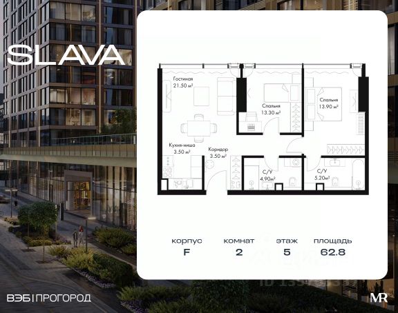Квартиры премиум-класса в жилом комплексе SLAVA у м. "Белорусская" от застройщика. В продаже 2-комнатная квартира площадью 67.10 м² на 5-м этаже корпуса G. Новый современный жилой комплекс премиум-класса SLAVA расположен в той части центра, где традиция соединяется с прогрессивными городскими тенденциями. Здесь историческая Москва встречается с передовым миром. Популярные театры и старинные церкви соседствуют с современным деловым кварталом и гастрономическим кластером Депо. SLAVA находится всего в 5 мин. пешком от м. "Белорусская", по-новому открывая Ленинградский проспект. Проект был разработан легендарным архитектором Хельмутом Яном, основателем чикагского архитектурного бюро Jahn. Его работы отмечены множеством наград и реализованы в мегаполисах по всему миру. По замыслу архитекторов, жилой комплекс образуют четыре высотные башни, соединенные одноэтажным стилобатом "Хронограф". Здесь, на первом уровне, открытые и закрытые общественные пространства: небольшие сады, места для встреч и отдыха, кафе, рестораны, магазины, спортивный центр и даже выставочное пространство. Важнейшей особенностью пространства является его всесезонность: благодаря правильной организации, ландшафтному дизайну, инженерной инфраструктуре здесь будет уютно и в жару, и в xолод, и в ненастье. На втором уровне стилобата расположится приватный парк для жильцов. Особенности комплекса: - Идеальное расположение в престижной части Москвы (10 мин. от Кремля) - Панорамное остекление - Подземный паркинг с дизайнерской отделкой - Современные инженерные системы - Продуманная внутренняя инфраструктура - Приватный сад 7700 кв.м. Расположение комплекса: - 5 минут до станции метро "Белорусская" - 3 минуты до ТТК - 8 минут до "Садового кольца" Компания MR предлагает своим клиентам специальные условия приобретения квартир в рамках программ ипотечного кредитования от банков-партнеров.