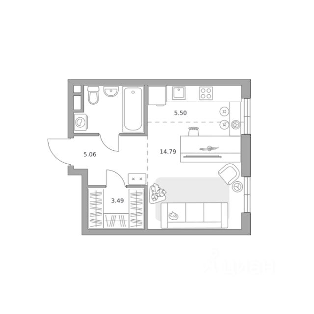 Продаётся студия 105, площадью 33,51 м², на 14 этаже в ЖК "MYPRIORITY Нижегородская" корпус 1. Стоимость — от 14171179 руб. Квартира без отделки, планировка односторонняя, окна на улицу.