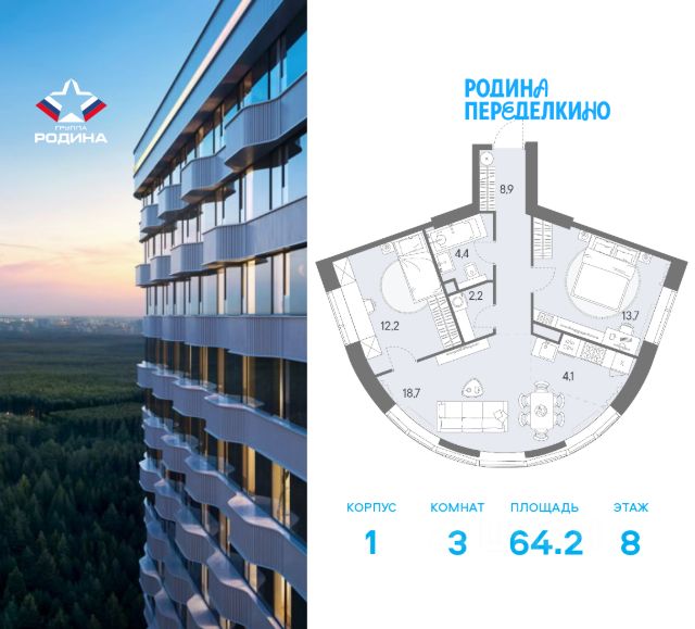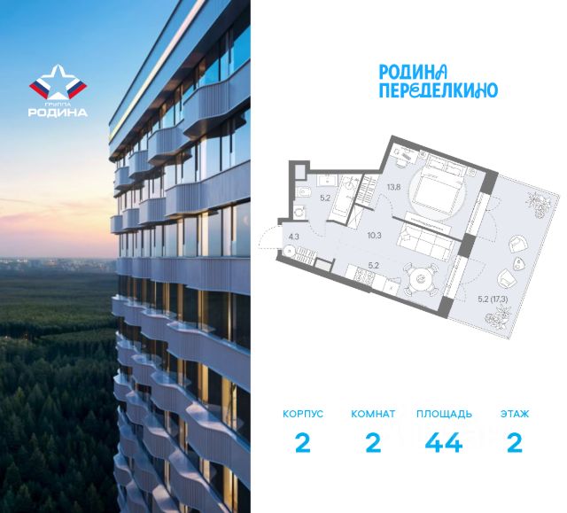 Продаётся 2-комнатная квартира площадью 44 м² на 2 этаже в Жилом Комплексе "Родина Переделкино". Первый в России киберспортивный кластер от Группы Родина. Это жилой квартал бизнес-класса на Западе Москвы на границе с Ульяновским лесопарком, состоящий из пяти высотных зданий с подземной одноуровневой автостоянкой. В жилом комплексе широкий выбор вариантов жилья — от компактных студий до просторных 5-комнатных квартир. Помимо комфортных европланировок, представлены уникальные форматы: квартиры с панорамными гостиными, квартиры с террасами на 2 этаже. Преимущества расположения: • 3 минуты пешком до метро "Новопеределкино" • Лесные массивы - чоботовский лес, ульяновский лесопарк и мещерский природный парк. • Прямой выезд на Боровское Шоссе • 30 минут транспортом до делового центра Москва - Сити • 10 минут на машине до аэропорта "Внуково" Развитая инфраструктура: • 5 жилых корпусов • Деловой центр с Welness и SPA • Мультиарена с развлекательным digital - центром • Гастроулица: кофейни, рестораны, стритфуды Продам квартиру в районе Ново-Переделкино в Москве.