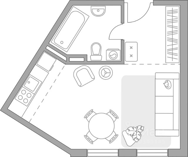 Продаётся студия 390, площадью 33,87 м², на 11 этаже в ЖК "Тринити" корпус 1. Стоимость — от 14826851 руб. Квартира без отделки, планировка односторонняя, окна во двор.