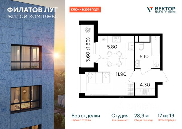 Продается квартира-студия без отделки в 9 фазе города-парка "Первый Московский". Общая площадь квартиры - 27,6 кв. м, этаж 1 из 19. Срок сдачи - 4 квартал 2026 года. Тип дома - монолитный. Цена указана при 100% оплате. Новый корпус состоит из 2х секций, без отделки. Город-парк "Первый Московский" расположен всего в 7 км по Киевскому шоссе (Новая Москва). Из города-парка прямой выезд на Киевское шоссе и трассу Солнцево-Бутово-Варшавское шоссе. ТРАНСПОРТНАЯ ДОСТУПНОСТЬ: - 5 мин. на личном автомобиле или 10 мин. на автобусе 189, 147, 193 до станции метро "Филатов Луг" - 5 мин. на личном автомобиле или 12 мин. на автобусе 863 до станции метро "Саларьево" - 6 мин. на личном автомобиле или 15 мин. на автобусе 333 до станции метро "Рассказовка" РАЗВИТАЯ ИНФРАСТРУКТУРА В ОКРУЖЕНИИ: - общеобразовательная школа 2120 корпуса д1, д7, ш1-ш5 - детский сад 2120 корпуса д2, д9 - школа искусств - городская больница, детская поликлиника, филиал 5 - подстанция скорой помощи 58 и пожарно-спасательный центр 313 - отдел полиции, отдел ГИБДД - торговые центры Столица и Новомосковский - стадион, каток, бассейн - кафе, продуктовые магазины, аптеки, фитнес центры, салоны красоты и пр. БЛАГОУСТРОЙСТВО: - детская площадка для малышей и детей до 12 лет - места отдыха для родителей в непосредственной близости - озеленение территории с учетом зонирования - максимальная близость корпуса к пару Филатов луг ОСОБЕННОСТИ АРХИТЕКТУРЫ: - безбарьерные входные группы - колясочные в каждой входной группе - коммерческие помещения на 1 этаже в двух секциях - кладовые помещения расположены на жилых этажах и на -1 этаже - в каждой секции корпуса по 3 лифта: 2 пассажирских, 1 грузовой - на фасадах предусмотрены корзины для установки внешних блоков кондиционеров - видеонаблюдение установленное в холлах первых этажей, у подъездов и прилегающей территории АВТОРСКИЙ ДИЗАЙН: Входные группы выполнены по авторскому дизайну, оснащены системой "тёплый пол". В каждой входной группе будет располагаться комфортабельная зона ожидания, почтовые ящики с ячейкой для спама, колясочная, акцентные пуфы и столик.
