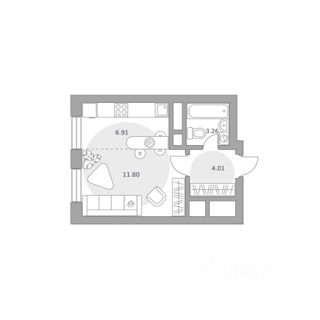 Продаётся студия 617, площадью 25,98 м², на 13 этаже в ЖК "Ильинойс" корпус 3. Стоимость — от 7000651 руб. Квартира без отделки, планировка односторонняя, окна на улицу.