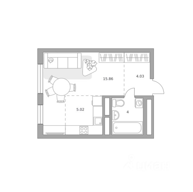 Продаётся студия 102, площадью 28,91 м², на 8 этаже в ЖК "Новая Алексеевская роща" корпус 4. Стоимость — от 5669364 руб. Квартира без отделки, планировка односторонняя, окна во двор.