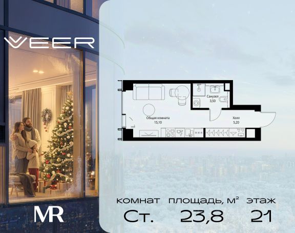 Прямая продажа от застройщика. В ЖК SET продается студия площадью 23.30 м², расположенная в корпусе 2, на 3 этаже 59 этажного дома. SET имеет стратегически выгодное расположение в ЗАО, в районе с большой историей и блестящим будущим: между природной зоной долины реки Сетунь и Кутузовским проспектом. В рамках возведения первой очереди предусмотрено три корпуса высотой 18, 45 и 59 этажей. На верхних этажах спроектированы общедоступные смотровые площадки с панорамным обзором на центр столицы. Преимущества проекта: • Функциональные планировочные решения • Контроль проникновения через входную дверь • Система управления освещением и температурой в квартире • Система защиты от протечек с функцией перекрытия воды • Вход в подъезд по биометрическим считывателям Face ID • Скоростные лифты • Двухуровневый подземный охраняемый паркинг на 495 машино-мест Застройка SET включает в себя не только жилые корпуса, но и инфраструктурные объекты. Все необходимое для повседневного комфорта будет расположено в шаговой доступности: • Фитнес-клуб с бассейном • Ведущая городская школа, детский сад и школа искусств • Центр культуры и досуга • Медицинский центр • Кафе и рестораны Расположение комплекса: Пешком: • Метро "Давыдково" - 17 минут • Парк "Долина реки Сетунь" - 3 минуты • Открытие новых станций метро в шаговой доступности в будущем Инфраструктура: Разнообразить свой день резиденты VEER смогут также проводя больше времени на свежем воздухе. Двор разделен на 4 зоны разных эмоций и действий, которые пересечены и соединены веерными прогулочными маршрутами: • Спортивная площадка устроена в глубине ""Кленовой рощи"" • В ""Чайном домике"" будет создан навес с утеплением для отдыха в любую погоду • Площадки для детей воплотятся в ""Волшебный лес"" с цветами, зеркалами и световым дизайном • ""Центральная площадь"" устроена у водного оазиса живописного пруда. " На машине: • "Москва-Сити" - 15 минут • Садовое кольцо - 20 минут • ТЦ "Океания" - 8 минут • ТЦ "Времена года" - 13 минут • Сколково - 12 минут • Гребной канал - 17 минут Компания MR предлагает своим клиентам специальные условия приобретения квартир в рамках программ ипотечного кредитования от банков-партнеров. Квартира-студия в новостройке на улице Верейская в Москве.