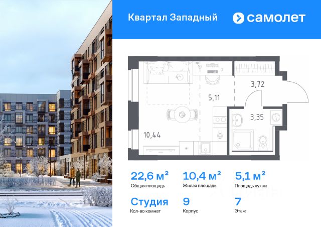 Строим кварталы для жизни с заботой о будущем. Предлагается квартира студия комфорт-класса 18,73 кв.м в корпусе 2 на 1 этаже, в ЖК "Квартал Западный" Квартира с чистовой отделкой. Доступность дополнительных опций уточняйте у застройщика. Приобрести квартиру возможно по специальным акциям от застройщика, с текущими условиями акций можно ознакомиться в блоке "Акций". Цена динамическая и может отличаться, уточняйте актуальность у застройщика. Жилой комплекс в окружении лесопарков и рядом с рекой. До станции МЦД-4 "Санино" можно дойти пешком за 7 минут, а на территории проекта появится транспортно-пересадочный узел с торговым центром. Для жителей построят школу, 2 детсада, в одном из которых будут развивающие кабинеты-трансформеры. Дворы — тихое зеленое пространство без машин. В проекте появится собственный ландшафтный парк с благоустроенной набережной и центральная площадь, на которой будут проводиться различные мероприятия. Высота домов — от 5 до 15 этажей. Фасады выполняют в естественных оттенках, в соответствии с дизайн-кодом "Полевой луг". У каждой секции — свое цветовое решение. Белый цвет верхних этажей добавляет застройке легкости. Фасады облицованы клинкерным глазурованным кирпичом, который используют в проектах бизнес-класса.
