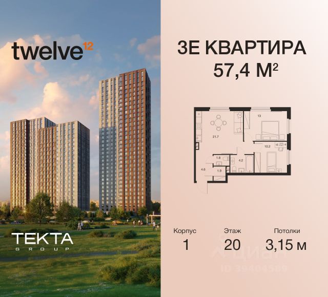 Рассрочка 0% с платежом от 120 000 ₽ в месяц. 2-комн. квартира в ЖК "Twelve" на 10 этаже в 34 этажном здании Корпус 1. Общая площадь: 43.6 кв.м., жилая: 27.90 кв.м. Высота потолков 3.00 м. ЖК Twelve от застройщика Tekta Group — это новый уровень жизни в районе Нагорный в 3-х минутах от станции метро. Проект представляет собой воплощение современной концепции комфортной жизни, где функциональность органично сочетается с эстетикой. Архитектура Twelve создает атмосферу, вдохновляющую на успех и располагающую к позитивным эмоциям. Дом, в котором каждый день будет наполнен уютом, а не рутинной работой и дорожными пробками. Twelve предлагает своим жильцам продуманные планировки, возможность объединения квартир, а также увидеть красоту города через угловое остекление увеличенных окон. Особое внимание уделено комфорту жителей: благоустроенная территория, зеленые насаждения, детские площадки, парковка. ЖК Twelve — это больше, чем просто жилье: это атмосфера умиротворенности, комфорта и гармонии.