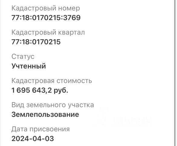 Кадастровый номер 77:18:0170215:3756 Участок в коттеджном посёлке "Крёкшино Лайф": ваша идеальная загородная резиденция Ищете место, где гармонично сочетаются комфорт городской жизни и спокойствие загородной тишины? Представляем вам участок в престижном коттеджном посёлке "Крёкшино Лайф" — идеальном варианте для строительства дома вашей мечты. Почему это выгодное предложение? Удобная транспортная доступность: всего 1 км (10 минут пешком) до станции D4 Санино — быстрый доступ к столичной инфраструктуре; 1,5 км до микрорайона Медовая Долина, где работают магазины "Озон" и "ВкусВилл". Полная информационная прозрачность: предоставлю геологические и геодезические данные по участку — вы будете уверены в надёжности строительства. Комплексное сопровождение: помогу привлечь проверенного подрядчика для возведения каркасного дома; окажу содействие в оформлении регистрации — избавлю вас от бюрократических сложностей. Преимущества локации Экология: посёлок расположен в живописной зоне, где свежий воздух и природная красота станут вашими ежедневными спутниками. Инфраструктура: всё необходимое — в шаговой доступности. Магазины, транспортные узлы, зоны отдыха — жизнь здесь будет комфортной и удобной. Перспективы роста стоимости: участки в "Крёкшино Лайф" — это не только место для жизни, но и выгодная инвестиция. Ваш следующий шаг Не упустите шанс обрести свой уголок спокойствия в развитом коттеджном посёлке! Свяжитесь со мной, чтобы: узнать детали о конкретном участке; обсудить условия сделки; запланировать просмотр. Сделайте первый шаг к дому вашей мечты — выберите участок в "Крёкшино Лайф"! Арт. 127928564