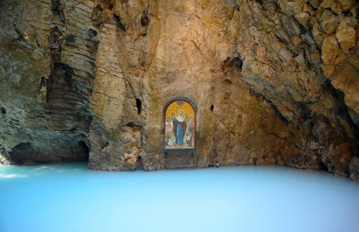 Это природное явление спрятано в карстовой пещере на склоне горы Машук. Проход к озеру лежит через тоннель XIX века, вырубленный прямо в горной породе. Попасть в пещеру может любой желающий, вход к озеру свободный.