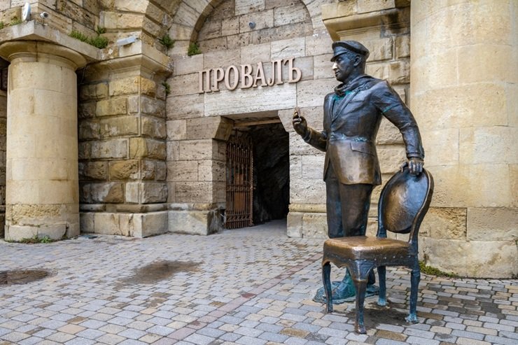 Провал упоминается в известном романе «Двенадцать стульев»: именно сюда Остап Бендер продавал билеты якобы на его восстановление. В 2008 году памятник персонажу установили у входа в пещеру. Скульптура стала популярным местом для фотосессий.