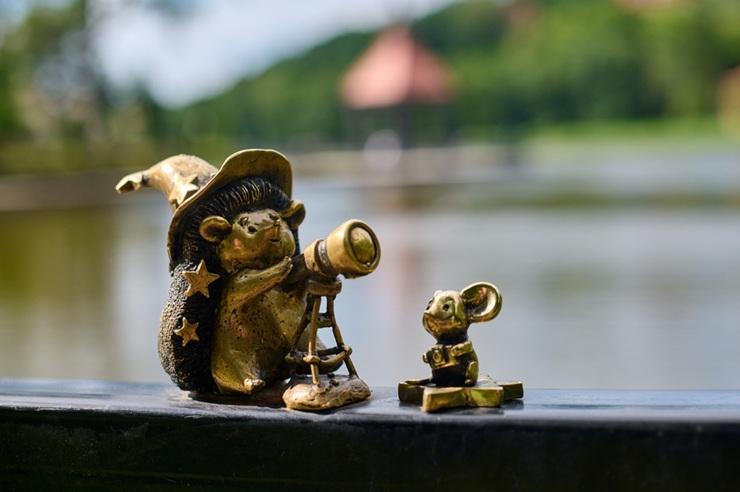 Вокруг озера проложены тропинки для прогулок, есть кафе, амфитеатр, беседки и 10 причудливых скульптур Светлоёжиков — Шустик, Акварелька, Элвис и другие. Можно устроить квест и найти все фигурки.