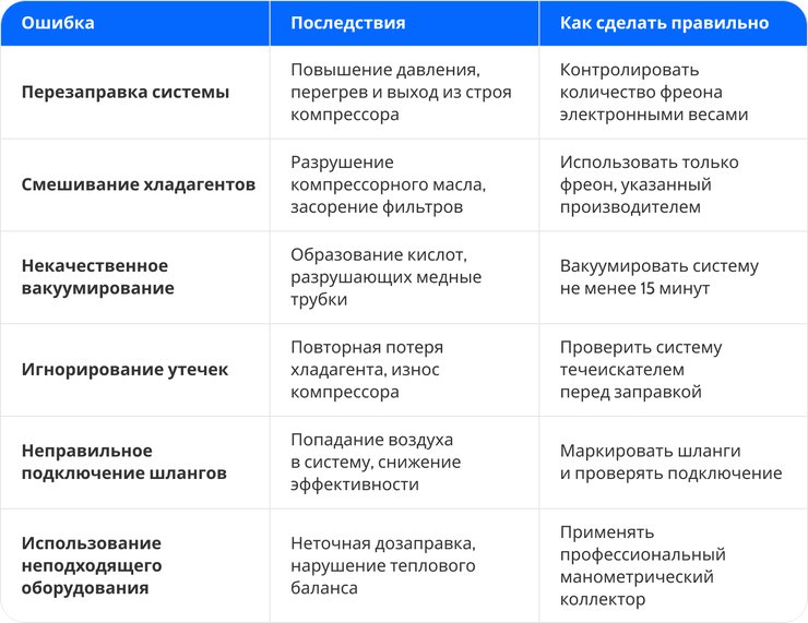 Если при заправке давление не стабилизируется или температура не снижается, возможно, в системе есть утечка. В этом случае следует прекратить работы и обратиться к специалисту.