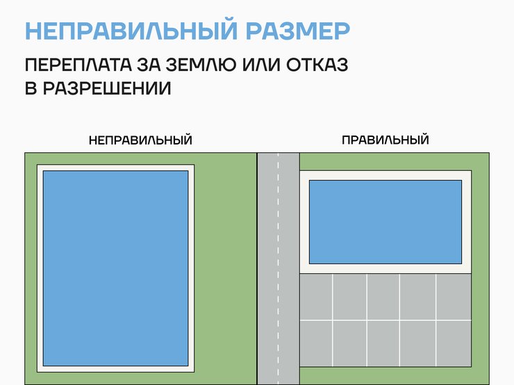 Почему это важно? Если участок слишком маленький по отношению к зданию, вы не сможете получить разрешение на строительство. Если слишком большой — переплатите за лишнюю землю.