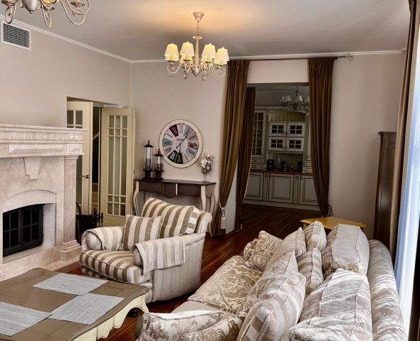 ID 43853. В закрытом клубном поселке Милорадово предлагается трехэтажный дом, построенный по индивидуальному проекту из натуральных экологически чистых материалов. Планировка: Цоколь: СПА-зона с бассейном и сауной, гостевой санузел, холл, гардеробная, техническое помещение. 1 эт: прихожая, гостиная с камином, совмещенная с кухней и обеденной зоной, кабинет, с/у, гардеробная, терраса. 2 эт: хозяйская спальня с гардеробной и с/у, две спальни, санузел. Мансарда: гостиная, спальня с санузлом. На лесном участке расположена беседка ВВQ, гараж на два машиноместа с квартирой для персонала, Поселок окружен лесом. Рядом находятся Дом отдыха Управления делами президента РФ "Архангельское", Дом Приемов "Газпром" с развитой инфраструктурой, включающей ресторан, бассейн и конференц-зал. PLEASE FEEL FREE TO CONTACT INTERMARK REAL ESTATE TO GET DETAILED INFORMATION OR TO SET UP A VIEWING! 24/7 HELP DESK SERVICE WITH ENGLISH -SPEAKING OPERATORS В доме: Полностью меблированная, Бассейн, Посудомоечная машина, Стиральная машина, Сушильная машина, Душевая кабина, Камин, Спутниковое/кабельное телевидение, Гараж, Интернет, Европланировка, Ванна, Интерьер в современном стиле, Гардеробная, Лесной участок, Ремонт - дизайнерский, Мебель в комнатах, Телефон, Телевизор, Мебель на кухне