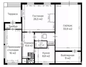 Цокольный этаж: гараж, котельная, постирочная, гардеробная.