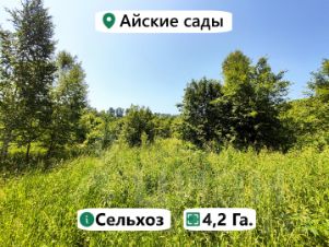 В продаже просторный участок в бывших Айских садах. Участок сельскохозяйственного назначения для с/х производства. Площадь участка 4,22 гектара, в собственности. На участке растут ранетки, груши, березы. Есть родничок. ИНФРАСТРУКТУРА: — озеро Ая и "Парк-отель Ая" в пешей доступности; — Аэропорт Горно-Алтайска, на котором запланирована реконструкция для приёма международных рейсов; — Строящаяся игорная зона (с действующим казино Altai Palace); — Всесезонный курорт Манжерок (с действующим горнолыжным комплексом и самым крупным в России отелем 5 звёзд); — Строящийся комплекс "Артэк-2" на территории особой экономической зоны "Бирюзовая Катунь" (в данном комплексе планируется возведение самого крупного аквапарка России); — В непосредственной близости уже работают крупные бизнесы: оздоровительный комплекс "Каимское", "Бирюзовая Катунь", "Алтайская долина". — Строится новая трасса на город-курорт Белокуриха. ДОСТОПРИМЕЧАТЕЛЬНОСТИ РЯДОМ: — озеро Ая; — Чёртов палец; — Каянчинские пороги; — Тавдинские пещеры; — перевал Бирюзовой Катуни; — Семинские пороги; — Камышлинский водопад; — Катунские ванночки. Обращайтесь любым удобным способом — консультируем с 05:00 до 16:00 часов по московскому времени. Встречаем в аэропорту, возим по актуальным объектам, проверяем на юридическую чистоту, сопровождаем сделки с недвижимостью — до победного финала! Арт. 107759200