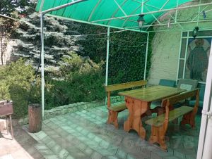 Во дворе дома расположена беседка под навесом с большим столом для приятного времяпрепровождения в кругу друзей приехавших вместе с вами. Возле стола для удобства расположен мангал, что бы удобней было следить за шашлыком не отрываясь от коллектива).