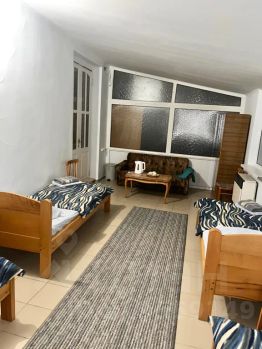 Расположен дом в 10-12 минутах ходьбы от пляжа и центральной набережной. Ближайший пляж галечный, до песчаного ещё 5 минут ходьбы. По пути на море будет несколько продуктовых магазинов, столовая, кафешки.