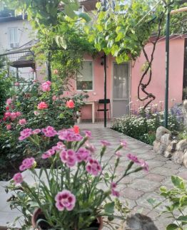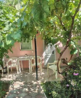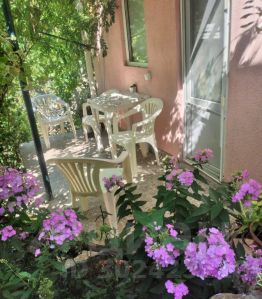 Небольшой дом с площадкой в саду у массандровского пляжа. Спальные места- 2 кровати для взрослых и двухъярусная кровать с верхним и раздвижным нижним детским местом. Есть возможность из двух кроватей организовать 1 двуспальное место с большим общим матрасом. В стоимость проживания входит постельное бельё. Для пляжа полотенца не выдаём. В доме есть всё необходимое для проживания, кухонный уголок, посуда, утюг, фен. Рядом магазины, аптека, кафе, столовая, детская площадка, остановка общественного транспорта на все направления, массандровский парк для прогулок. До набережной и пляжа 5-10 мин.