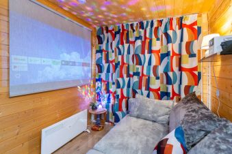 Чем оборудован домик? - двуспальная кровать - раскладывающийся диван - проектор и экран - интернет Wi-Fi - зеркало - мини-кухня - холодильник (без морозилки) - чайник - капсульная кофемашина - микроволновая печь - варочная поверхность - посуда для приготовления пищи (кастрюля, сковорода) - посуда для приема пищи - соль, перец, сахар, чай, кофе - кулер для воды - водонагреватель - обогреватель - фен - душевой уголок - диспенсеры для жидкого мыла и шампуня (гель для душа) - постельное белье и полотенца для каждого гостя - баня-сауна с электрической печкой - мангальная зона - терраса с подсветкой для отдыха на свежем воздухе - огнетушитель