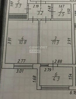 Общая площадь 54,3 м2.