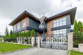 id:1562. Предлагается АБСОЛЮТНО НОВЫЙ двухэтажный дом "ПОД КЛЮЧ" в КП "Ренессанс парк". Фасад в стилистике Райта облицован натуральным деревом и камнем благородных оттенков. Из больших панорамных окон и террас можно наблюдать ВЕЛИКОЛЕПНЫЙ ПЕЙЗАЖ НА ЛЕС. Дом полностью меблирован (Италия), на кухнях встроенная бытовая техника, в санузлах - сантехника Antonio Lupi. ПЛАНИРОВОЧНОЕ РЕШЕНИЕ. 1 этаж: холл со вторым светом, гостиная-столовая-кухня с выходом на ТЕРРАСУ, черновая кухня, спальня с с/у и гардеробной, гостевой с/у, постирочная, кладовая, гардеробная, котельная, ГАРАЖ на 4 авто и блок для персонала с отдельным входом. 2 этаж: мастер-спальня с 2 с/у, большой гардеробной и террасой, 3 спальни, каждая - с с/у и гардеробной, кабинет. На участке выполнен красивый ЛАНДШАФТНЫЙ ДИЗАЙН by Imperial Garden (высажены крупномеры и кустарники, выстелен газон, выложены гранитные дорожки). Поселок "Ренессанс Парк" общей площадью 130 Га, расположен на 19 км Новорижского шоссе в Истринском районе. Премиальная локация с безупречной экологией, системой клубных инфраструктурных привилегий и индивидуальными проектами недвижимости откроет для Вас безграничные возможности для комфортного проживания и отдыха. В центральной части поселка расположен большой парк с оригинальными архитектурными и зелеными композициями, ОЗЕРО С ПЛЯЖНОЙ ЗОНОЙ и кварцевым песком, а также ресторанный комплекс. Есть детские площадки с безопасным оборудованием. Лесная часть Ренессанс Парка тоже благоустроена и подготовлена для прогулок и семейных пикников.