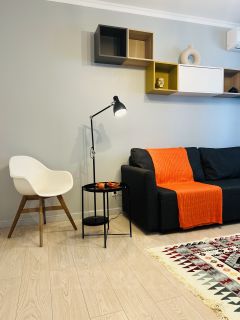 Квартира полностью меблирована и оснащена всей необходимой техникой: кондиционер, холодильник, посудомоечная машина, стиральная машина и телевизор. В комнате и на кухне размещена современная мебель, подходящая для комфортного проживания. Ванная комната оборудована ванной, что позволяет насладиться расслабляющими процедурами после долгого дня. На балконе можно устроить уютный уголок для отдыха с видом на город.