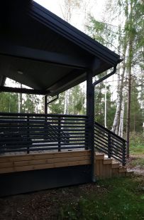 - Фундамент: ЖБ сваи с отделкой цоколя