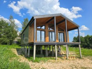 Дом просторный и светлый, зимняя технология, утепление - мин. вата 200 мм, высота потолка - от 2,7 м у стен до 4,3 м в коньке, общая площадь - 92 кв.м. Имеет 2 просторные комнаты, кухню-гостиную с панорамным остеклением и большой сан-узел. Построен строительной компанией с соблюдением технологии после проведения инженерно-геологических изысканий и топографической съёмки.
