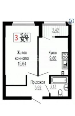 Общая площадь квартиры 36,5 кв. м.