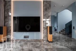 В отделке использованы только качественные материалы: продуманная эргономика, дорогие напольные покрытия, сантехника и фурнитура, аккуратные узлы примыкания, много точечного освещения и света по сценариям.