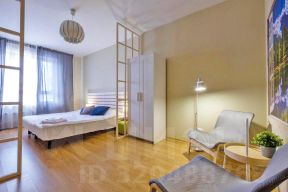 Квартира с необходимой техникой и мебелью. В комнате установлена цельная двуспальная кровать и небольшой односпальный диван. Стиральная машинка, гладильная доска, утюг - поможет во время путешествия или командировки привести в порядок одежду.