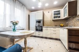 Кухня: Серые фасады MDF Soft Touch, столешница ЛДСП "Эгер", доводчики и австрийские направляющие Hfele. Встроенная техника: посудомоечная машина Bosch, индукционная варочная панель Bosch, духовка и СВЧ Hotpoint Ariston, холодильник Samsung (Польша). Всё новое и стильное!